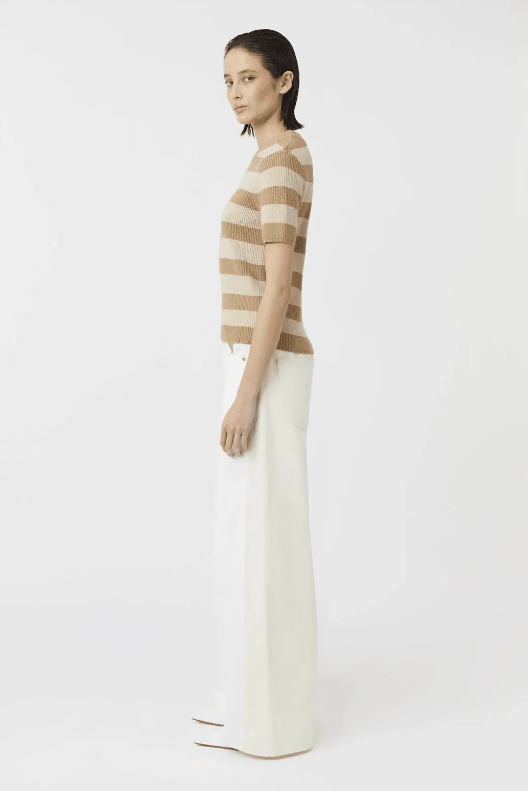 - CAMILLA AND MARC Umi Knit Tshirt in Tan and Cream