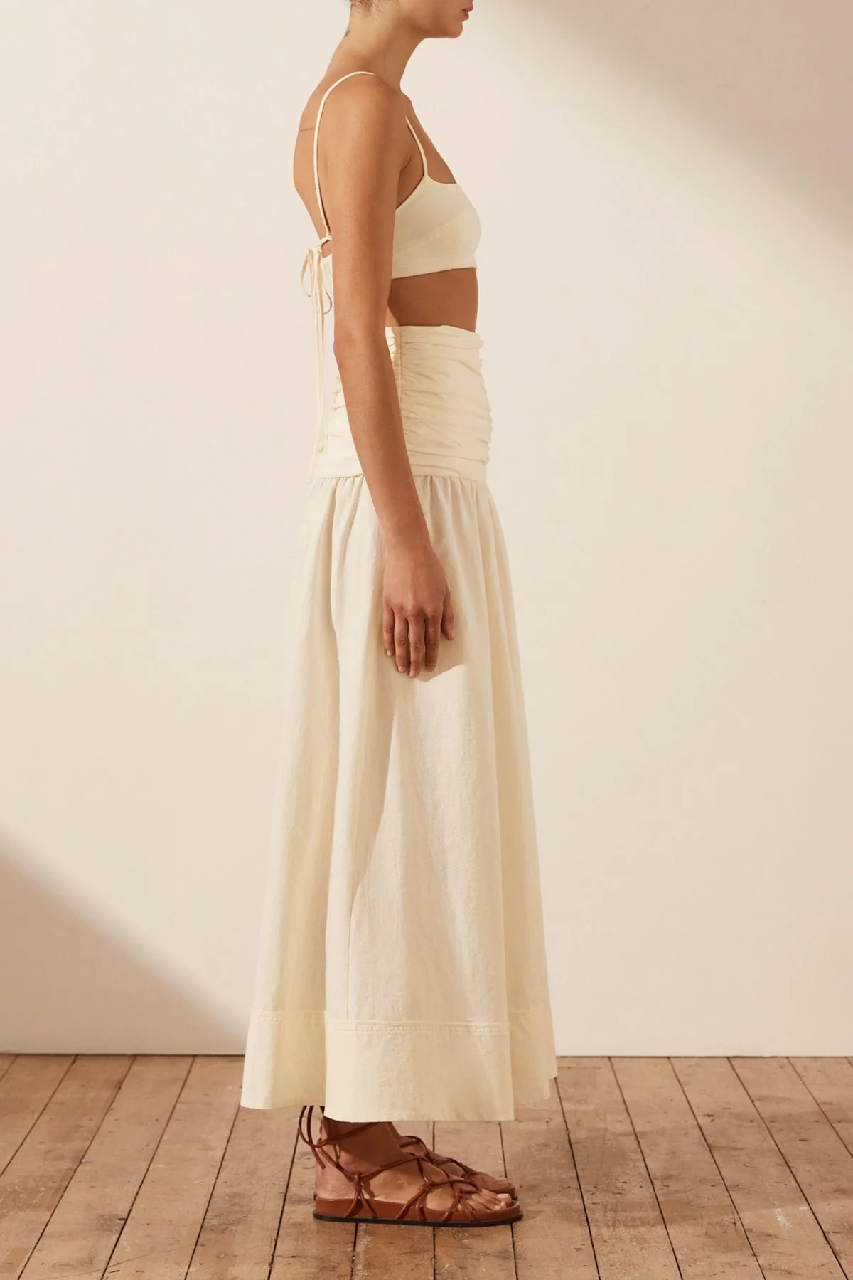 -70%SHONA JOY Cecilia Shirred Tie Back Bralette - Cream—
